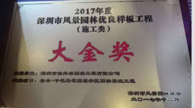 熱烈慶祝“泰豐·千花島”又榮獲大獎---深圳風(fēng)景園林類優(yōu)良樣板工程(施工類)大金獎!泰豐出品,必屬精品!