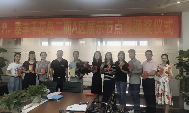 2018年7月10日上午10:30,泰豐千花島二期A區(qū)展示區(qū)節(jié)點獎頒獎儀式在華威會議室舉行。本次頒獎儀式由項目總郭勝偉總主持,各部門負(fù)責(zé)人及員工代表接受了頒獎。