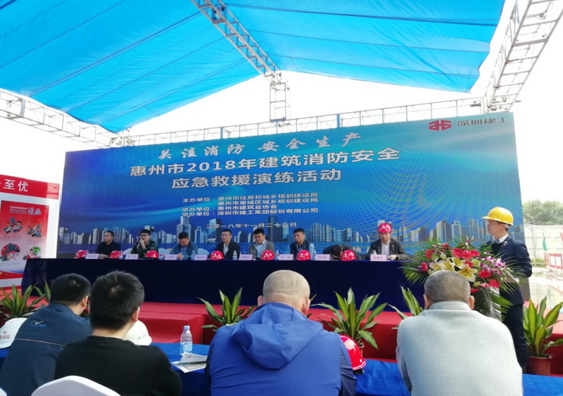 惠州市住建局建筑管科負責人、惠城區(qū)規(guī)建局分管安全負責人、建工科負責人、市消防大隊負責人、市直及惠城區(qū)各在建工地的項目現(xiàn)場負責人共逾500人參與了此次建筑消防安全應急救援演練活動。