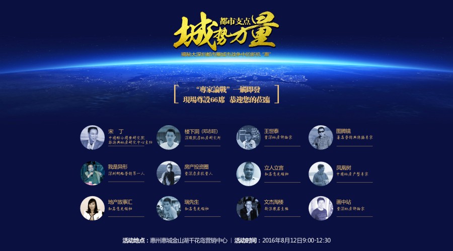8月12日泰豐千花島將邀請任職于中國綜合開發(fā)研究院旅游與地產(chǎn)研究中心主任的宋丁博士,深職院房地產(chǎn)研究所所長、深圳經(jīng)濟(jì)學(xué)會副會長鄧志旺(樓下洞),地產(chǎn)界知名意見領(lǐng)袖王世泰(老生阿泰)、劉曉云(地產(chǎn)故事匯)、陶文杰(文杰淘樓)、賀立立(立人立言)、華仲占(畫中站)、風(fēng)語(房產(chǎn)投資圈)、圖騰鏡、異形(我是異形)、鳳凰樹、瑞先生等資深地產(chǎn)評論家齊聚泰豐·千花島營銷中心,共同就當(dāng)下大家最關(guān)注的話題進(jìn)行解析互動以及延生: