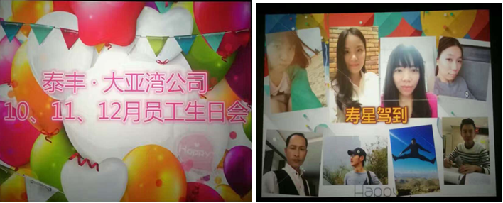 12月8日晚,大亞灣區(qū)域在惠州世紀(jì)城電影院舉行了第三季度員工生日會。本次活動由區(qū)域副總裁李炎超總主持,并為壽星們贈送禮物,獻(xiàn)上祝福。